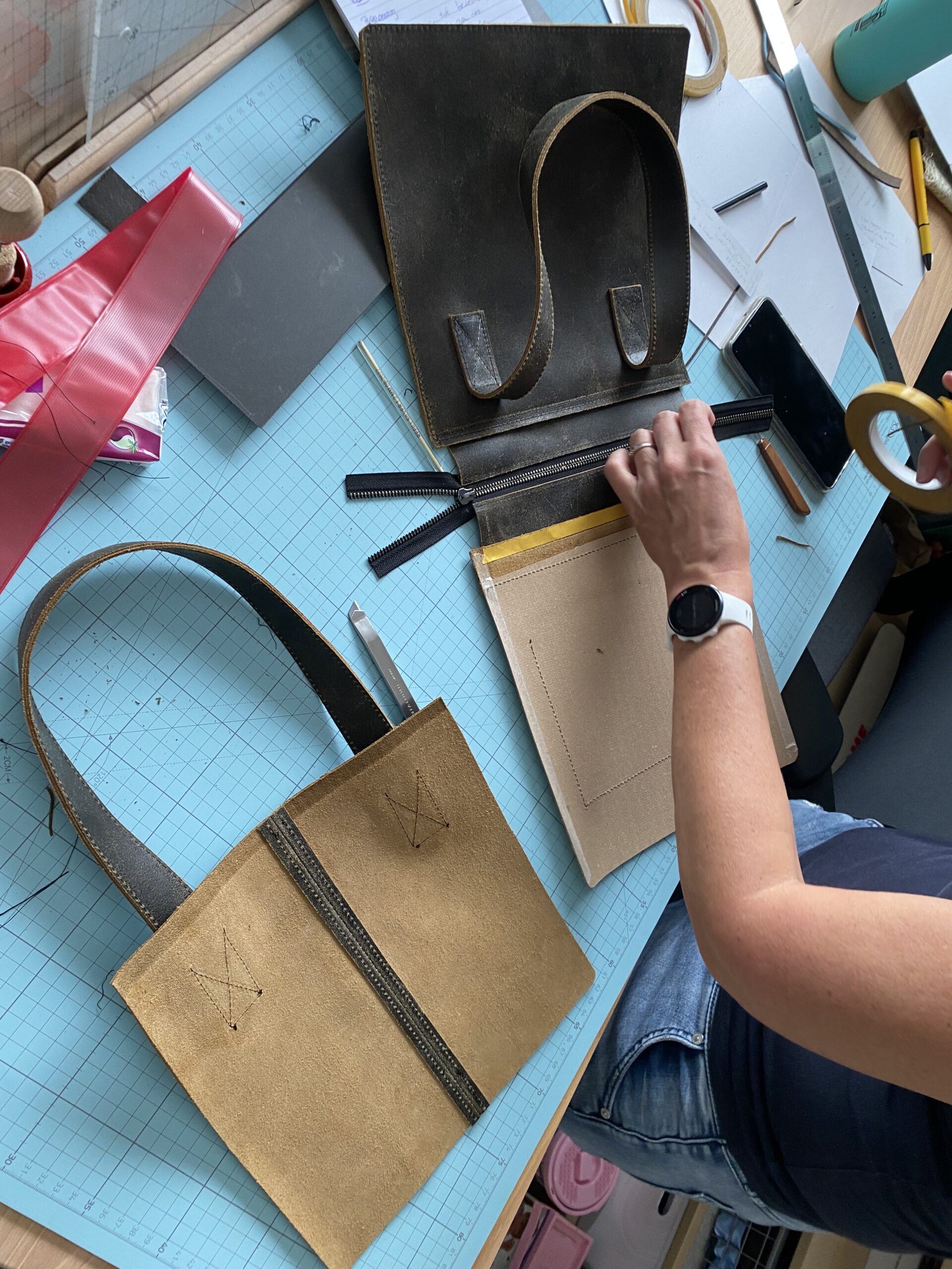 In December 2023, Natasja participated in a 3-day workshop to make a leather bag (shopper). She got so excited that she subsequently registered to become a Professional Bag Maker at the Leerlokaal in Arnhem. In June 2025, Natasja successfully completed this course. In addition to the course at Leerlokaal, she also followed additional courses at Cursustassenmaken.nl and Lederstudio.be.