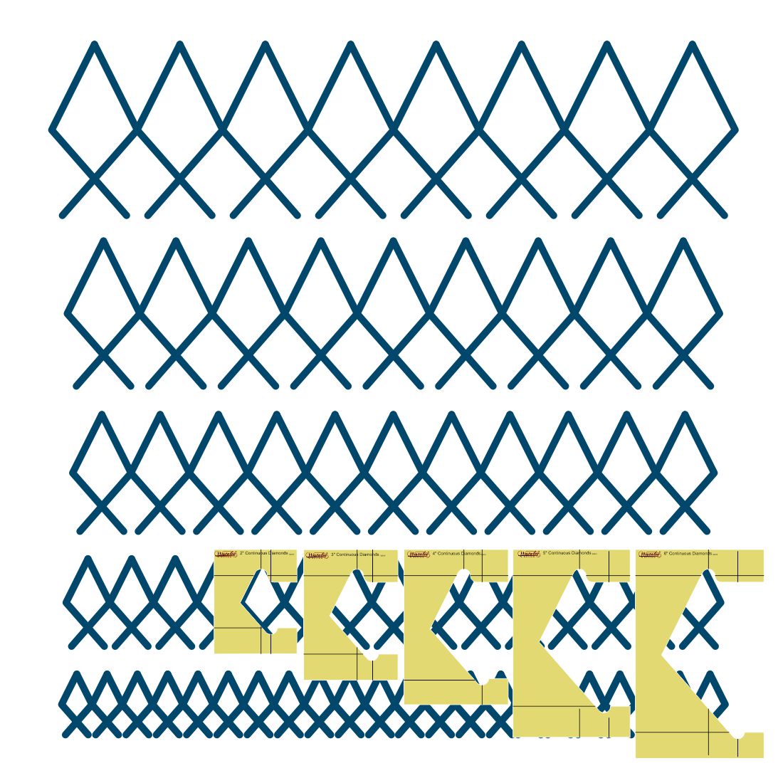 The Westalee Design Continuous Diamond Set allow you to create borders, block designs and edge to edge quilting with ease. Template comes in 5 sizes and a 5 piece set, finished sizes listed below: