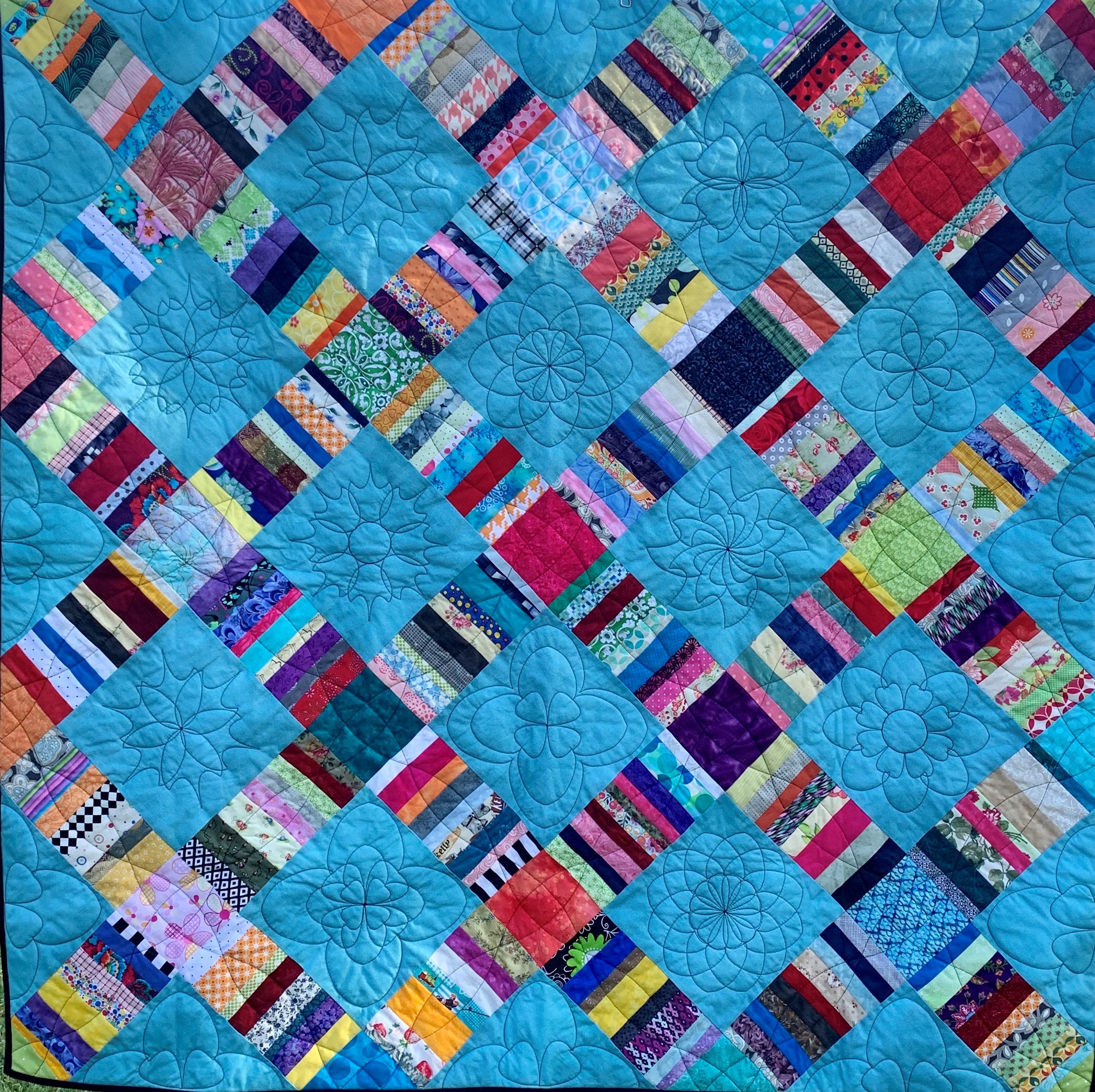 A full sized quilt from scrap fabrics featuring 8” blocks using the Spin-e-Fex 16 set of templates and the 12” Arc. Project created by educator Helen Sullivan.