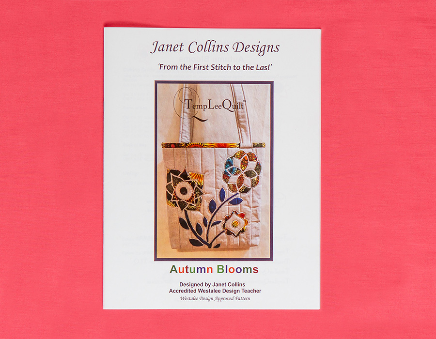 Autumn Blooms is made using Westalee Design’s  TempLeeQuilt technique.  The designs in the blocks are all formed using  Westalee Design’s Artisan Curves templates. The designs are created depending on where you trim out