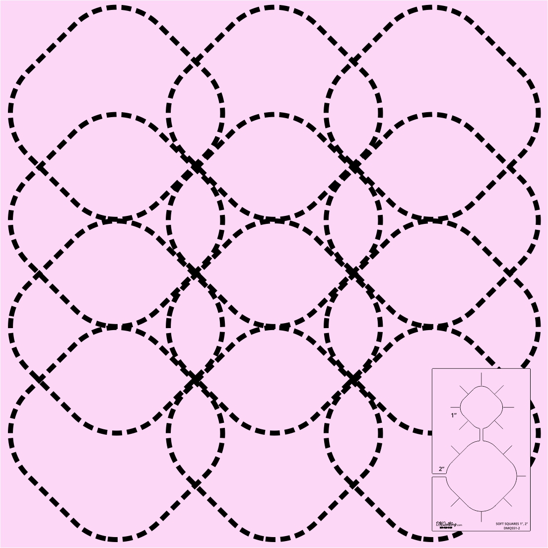 Two template sizes are available and sold individually. Each template contains two differing sizes of the Soft Squares within the one template offering more options in designs. The sizes are 1″ & 2″ or 1.5″ & 2.5″. With ease of use provided by the Easy Access Thread Slot, interchanging different sizes and shapes is as simple as it is fun! Get your complimentary Pattern to showcase these templates.