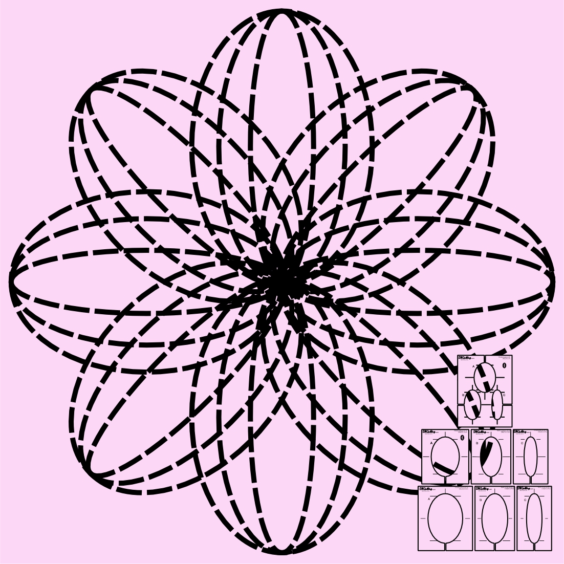 This Triad Ovals collection is the third in the TRIAD series which has 3 specific shapes that work together or independently per size. There are 7 total templates in this collection. The small 2.5″ group is contained within one template – a 3-in-1 template!