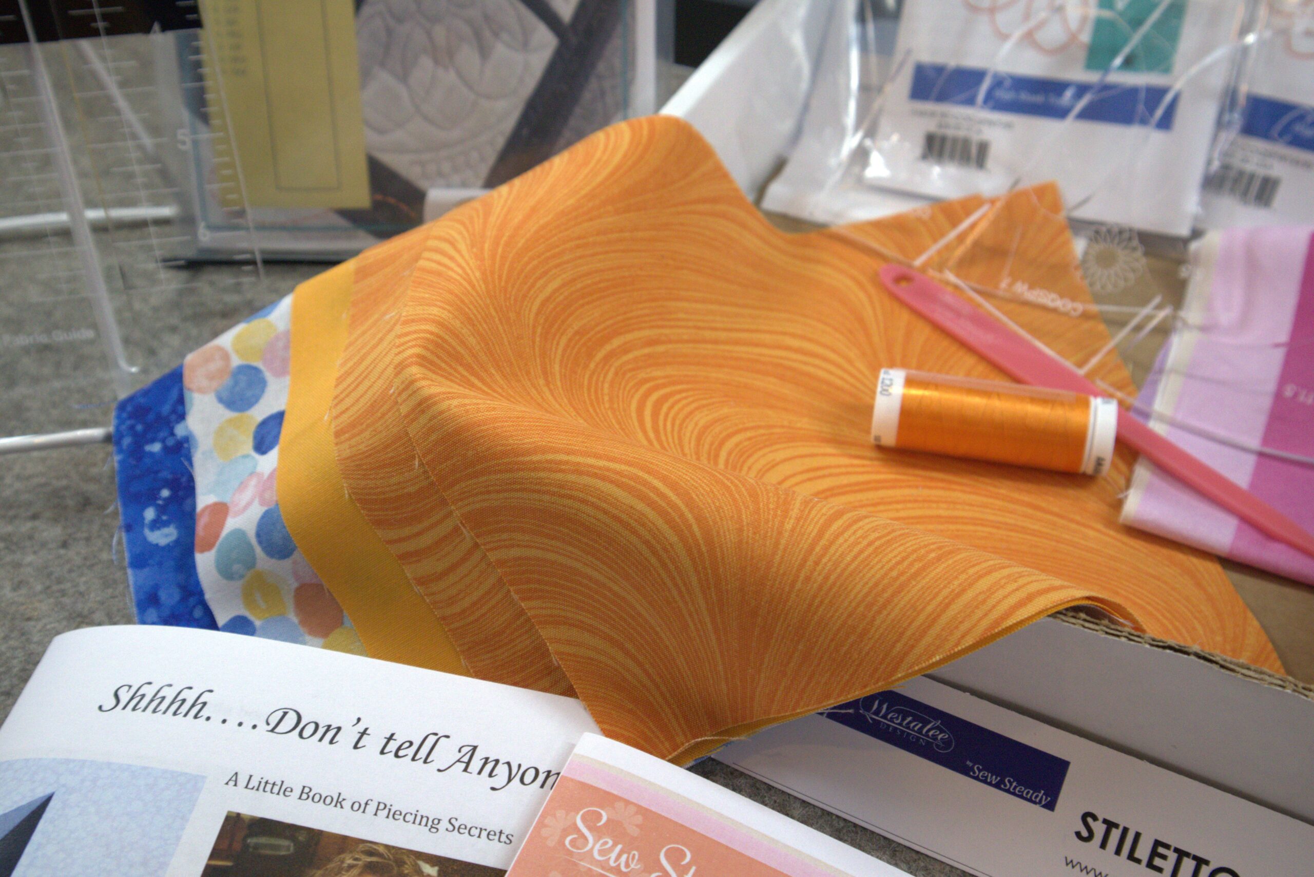Quarterly Box – A Creative Boost: Get a curated box each quarter filled with tools, fabrics, batting, and surprise items. This box aligns with tutorials to help you seamlessly transition from learning to creating.