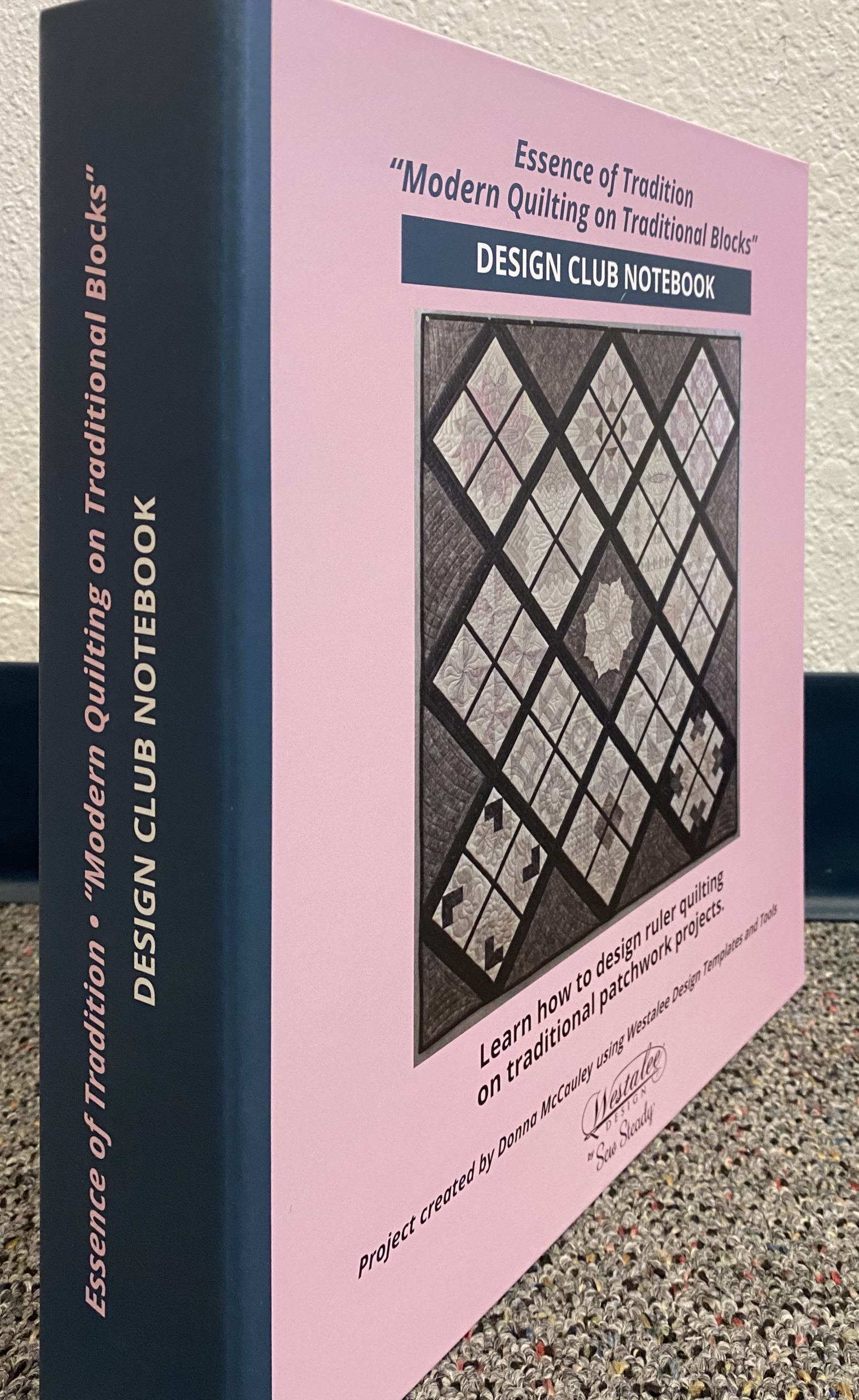 This 3-ring notebook was originally released as a means to organize the patterns, templates and tools for the Essence of Tradition Design Club. The design club has ended but this amazing project lives on with a project guide, template guide and inspiration for 13 traditional patchwork blocks shown below. Notebook includes tabs to organize per block design, and clear plastic sleeves to protect and store templates and tools or design ideas.