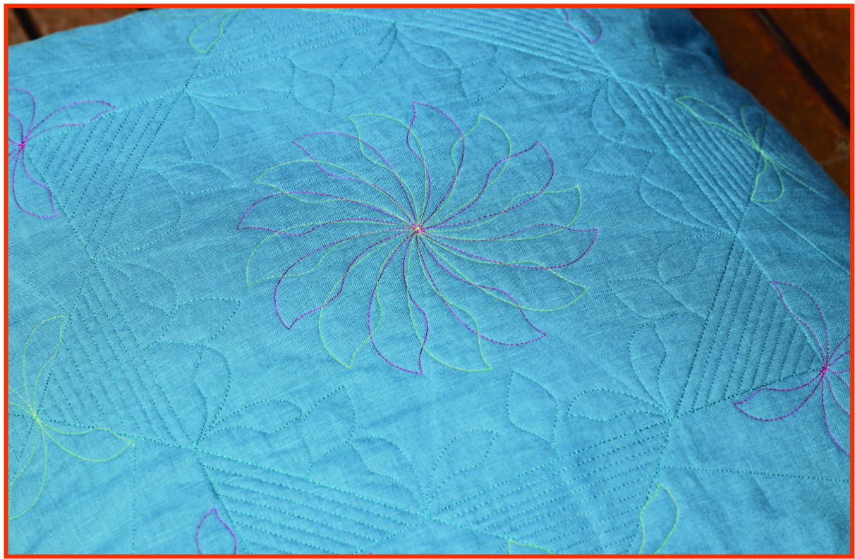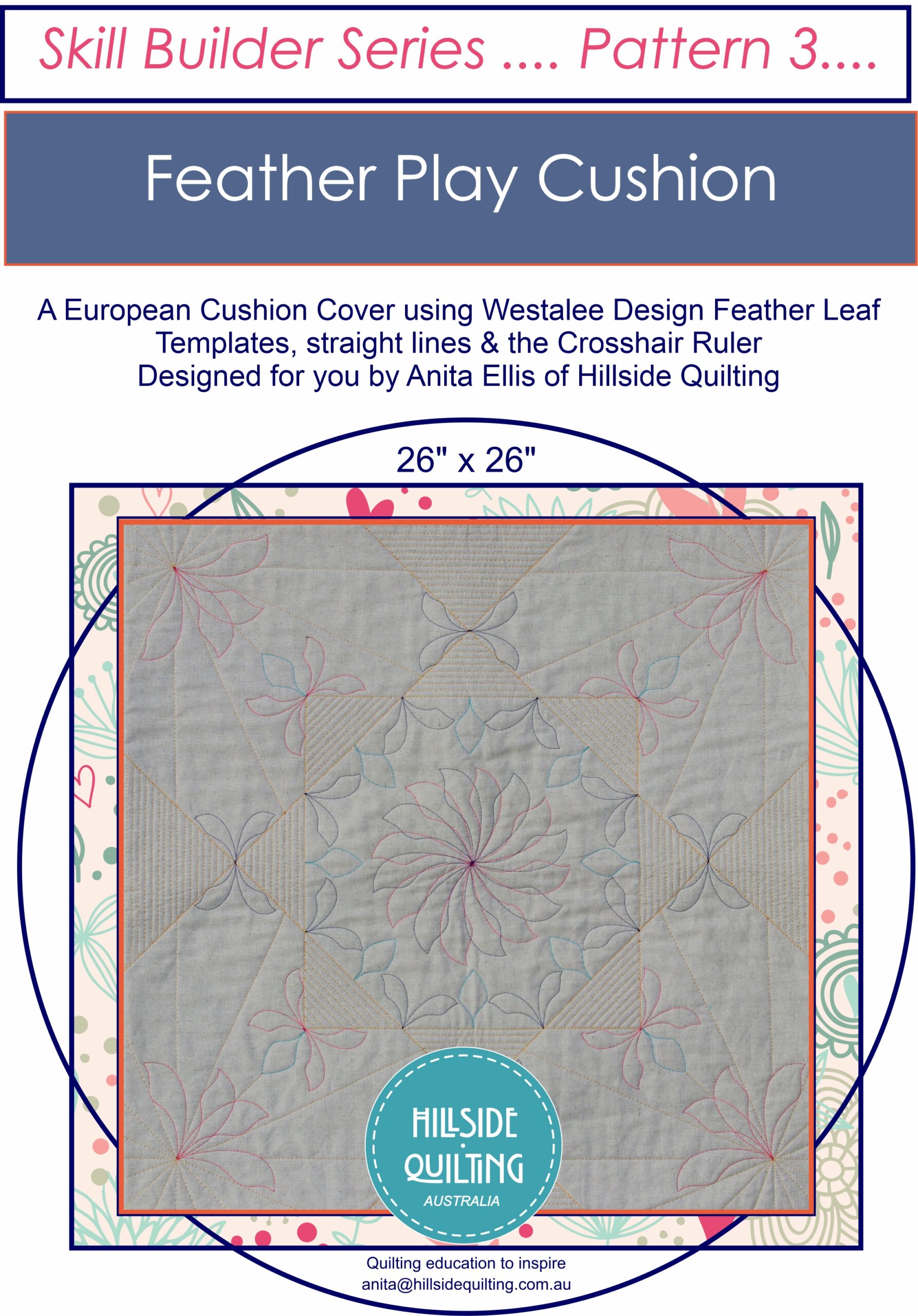 A European Cushion Cover using Westalee Design Feather Leaf Templates, straight lines & the Westalee Design Crosshair Ruler. This pattern will have you playing with feathers, contrasting straight lines and beautifully symmetrical designs. It will also give you the opportunity to really explore the use of different quilting thread colours in your work.