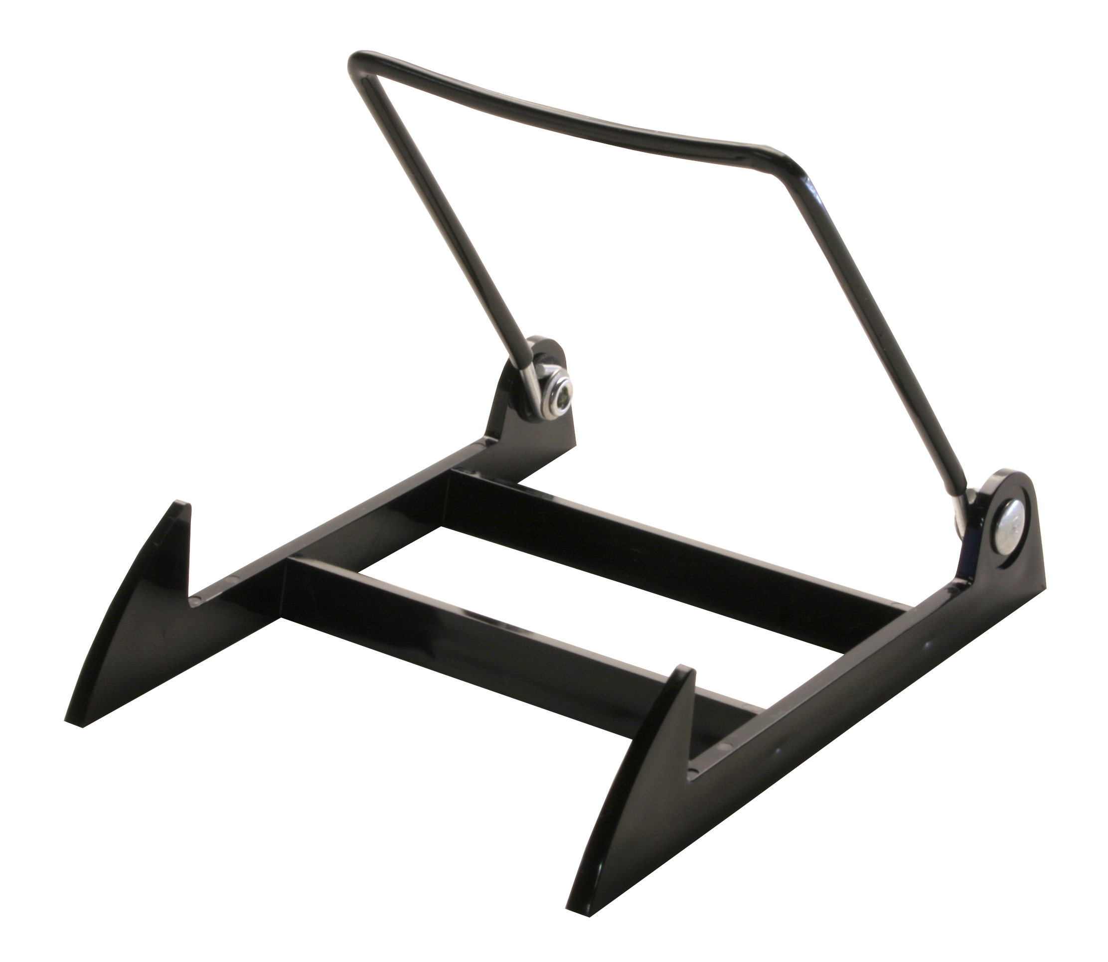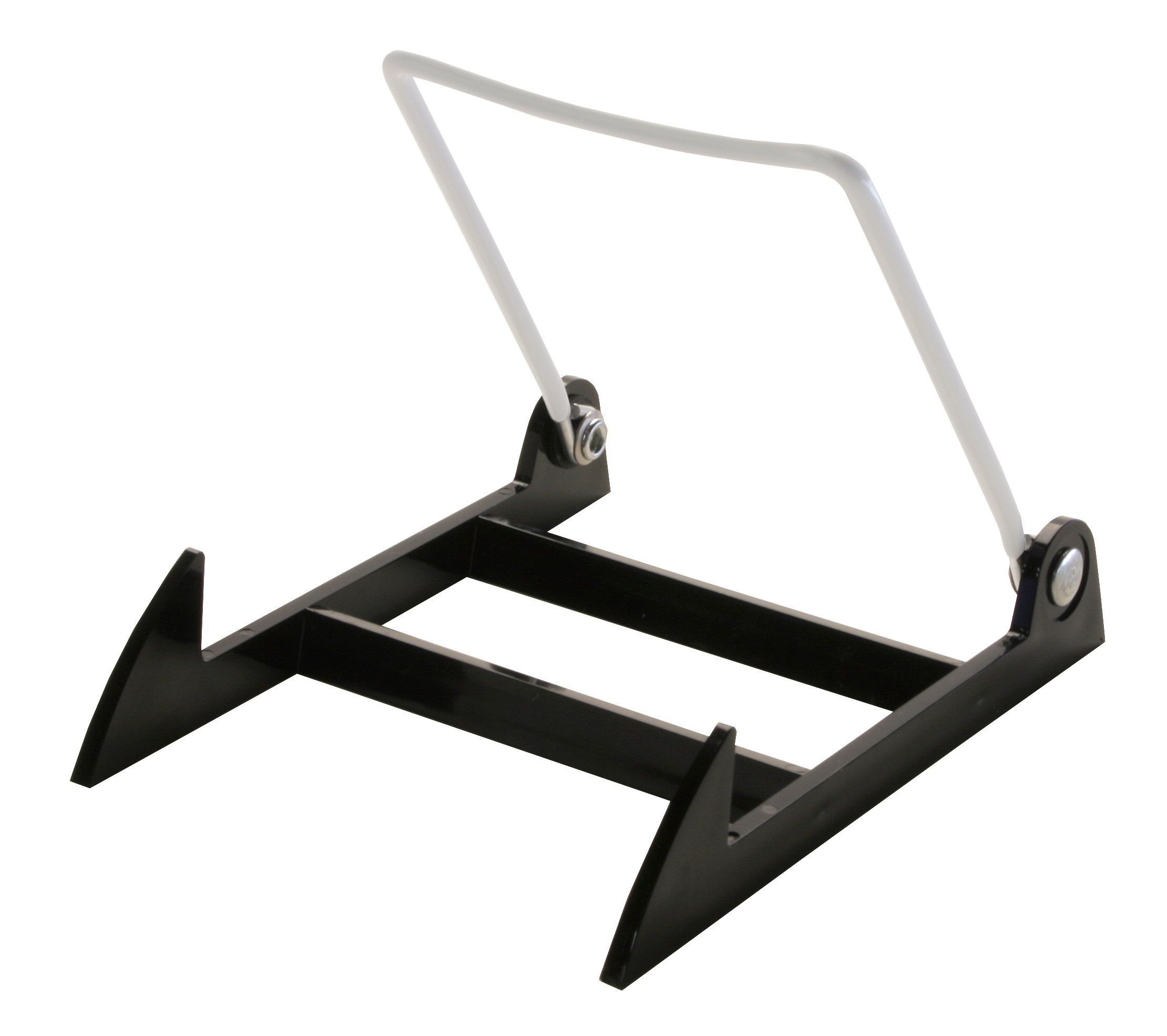 Sturdy acrylic base wire back stand, available in 3 sizes. Machine-riveted to a heavy, vinyl coated, steel wire back brace. Ideal for displaying serving trays, plates, china, gift ware, artwork, tiles, framed photos, collectibles and plaques.