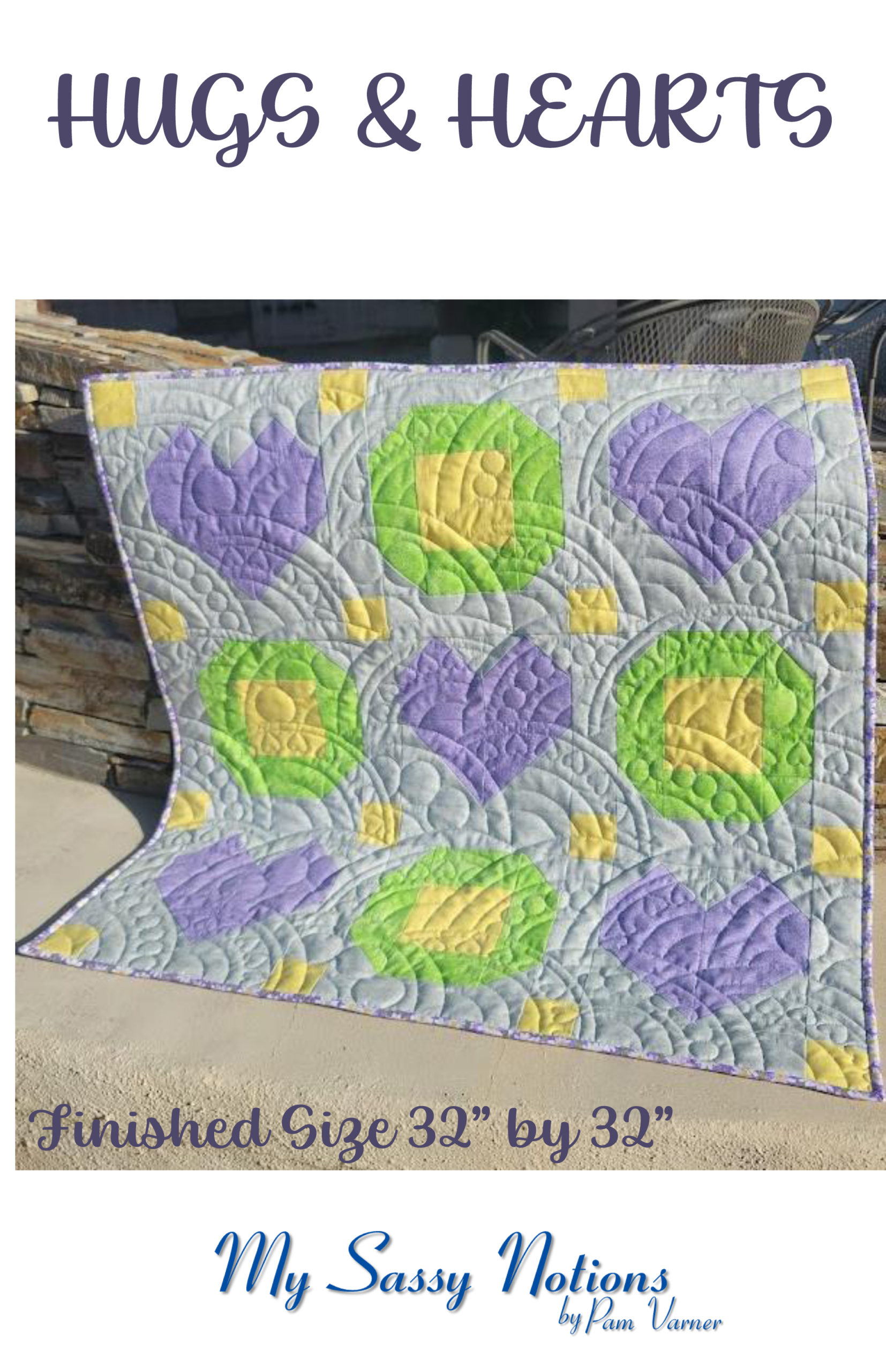 This is the pattern to make the quilt called, Hugs and Hearts. Includes cutting diagrams and construction illustrations.