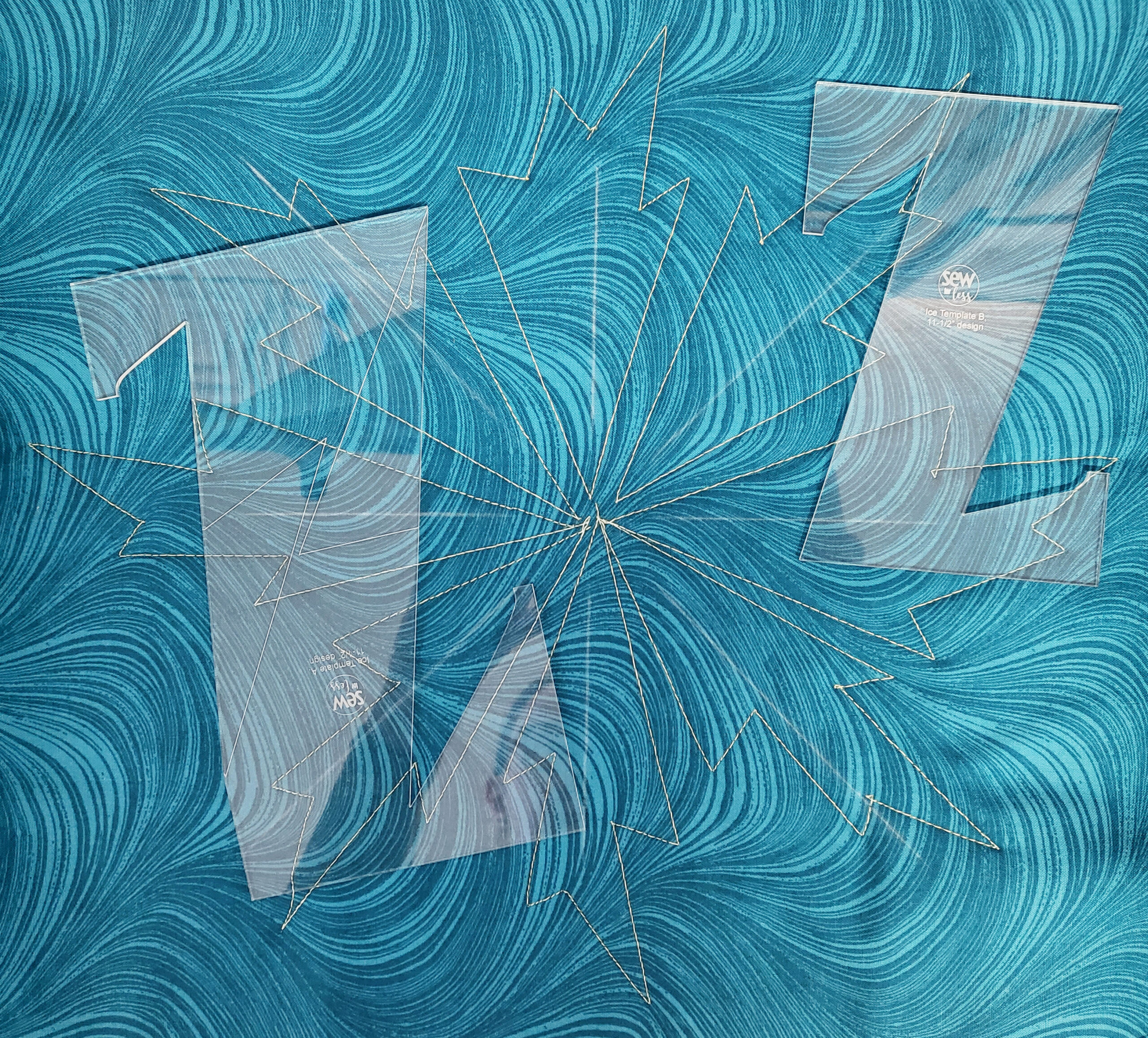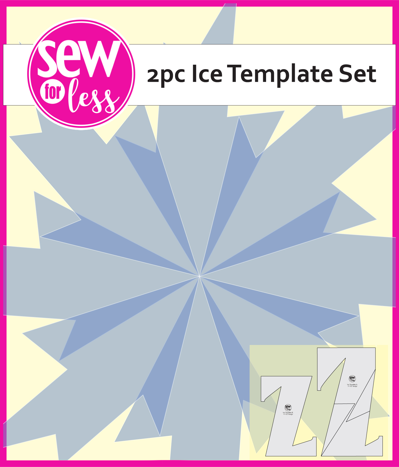 The Ice Templates by Sew For Less can be used to create concentric rotating designs and border designs. Each Template includes a foot rest on each end to allow for various angling of the Template to create different ice shaped designs.