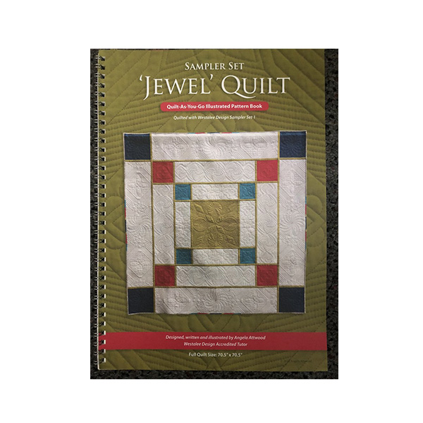 “I really hope you enjoy making this ‘Jewel’ of a quilt. Having taught it this past year as a monthly course before releasing the pattern book, I’ve already had the pleasure of seeing some stunning variations from my brave first students, some of whom, had only previously attended a Westalee Starter Day with me – so please don’t be intimidated – you can do it!” – Angela Attwood.