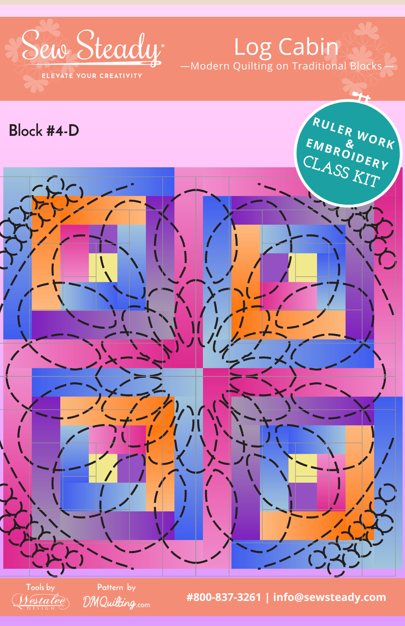 The Log Cabin 4D Quilt Kit is perfect for creating circular designs with the Circles on Quilts Spinning Wheel Templates. Featuring two templates (11½” and 5½”), along with a ½” Between the Lines Template for precise alignment, this kit allows you to add beautiful, dynamic circular patterns to your Log Cabin quilt. It also includes a practice fabric panel and Quilting Plan by DMQuilting to help you along the way.