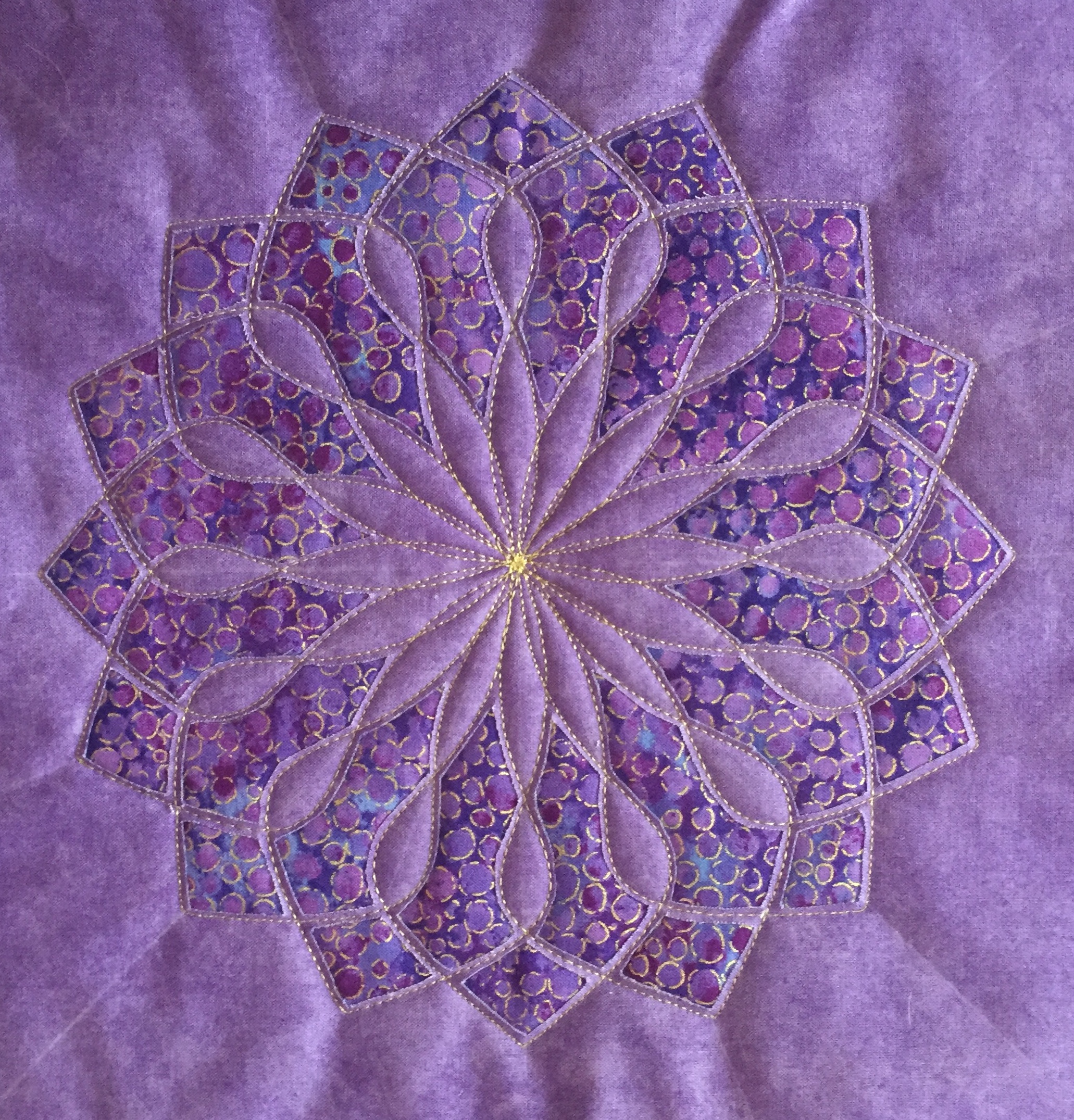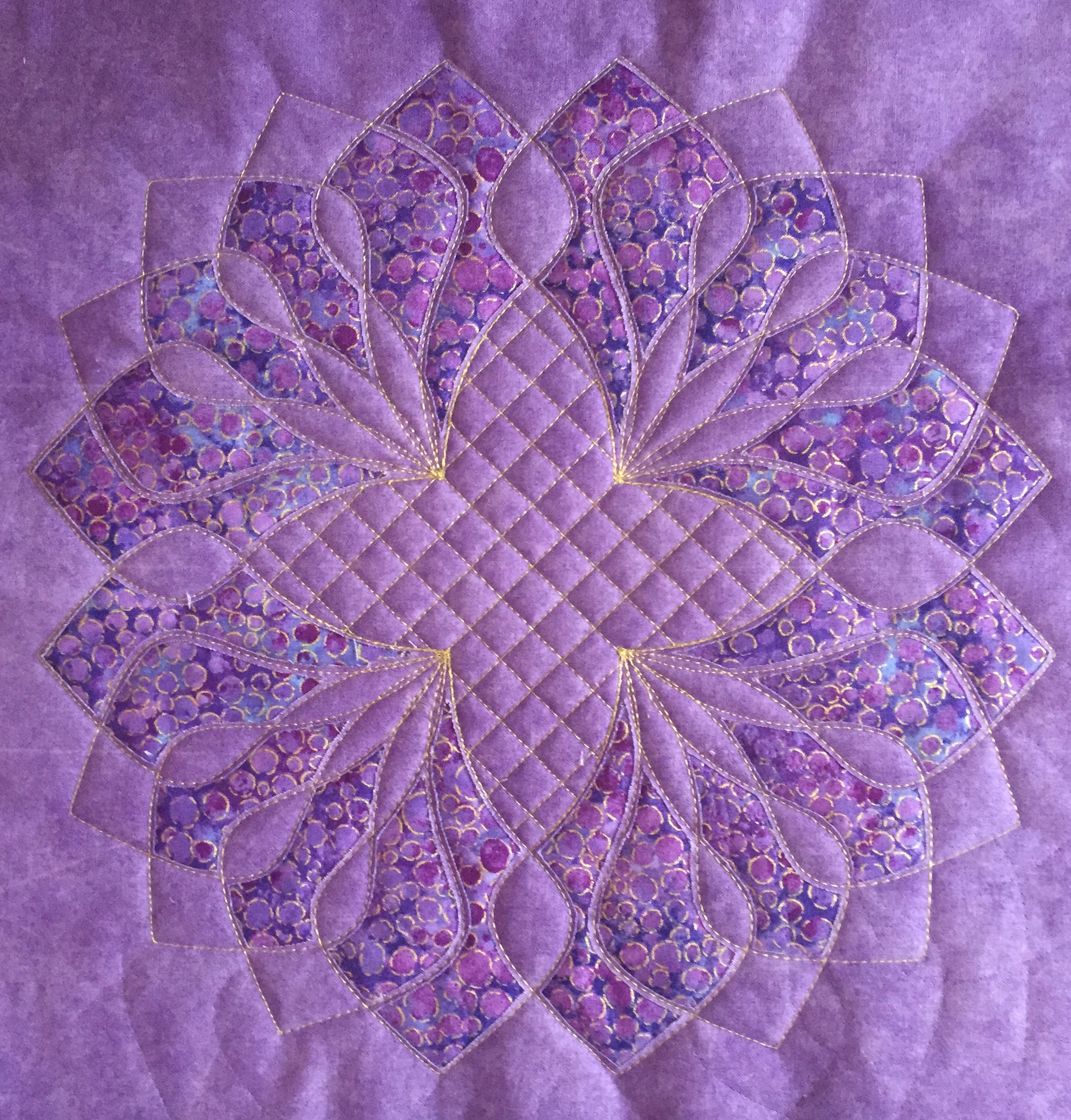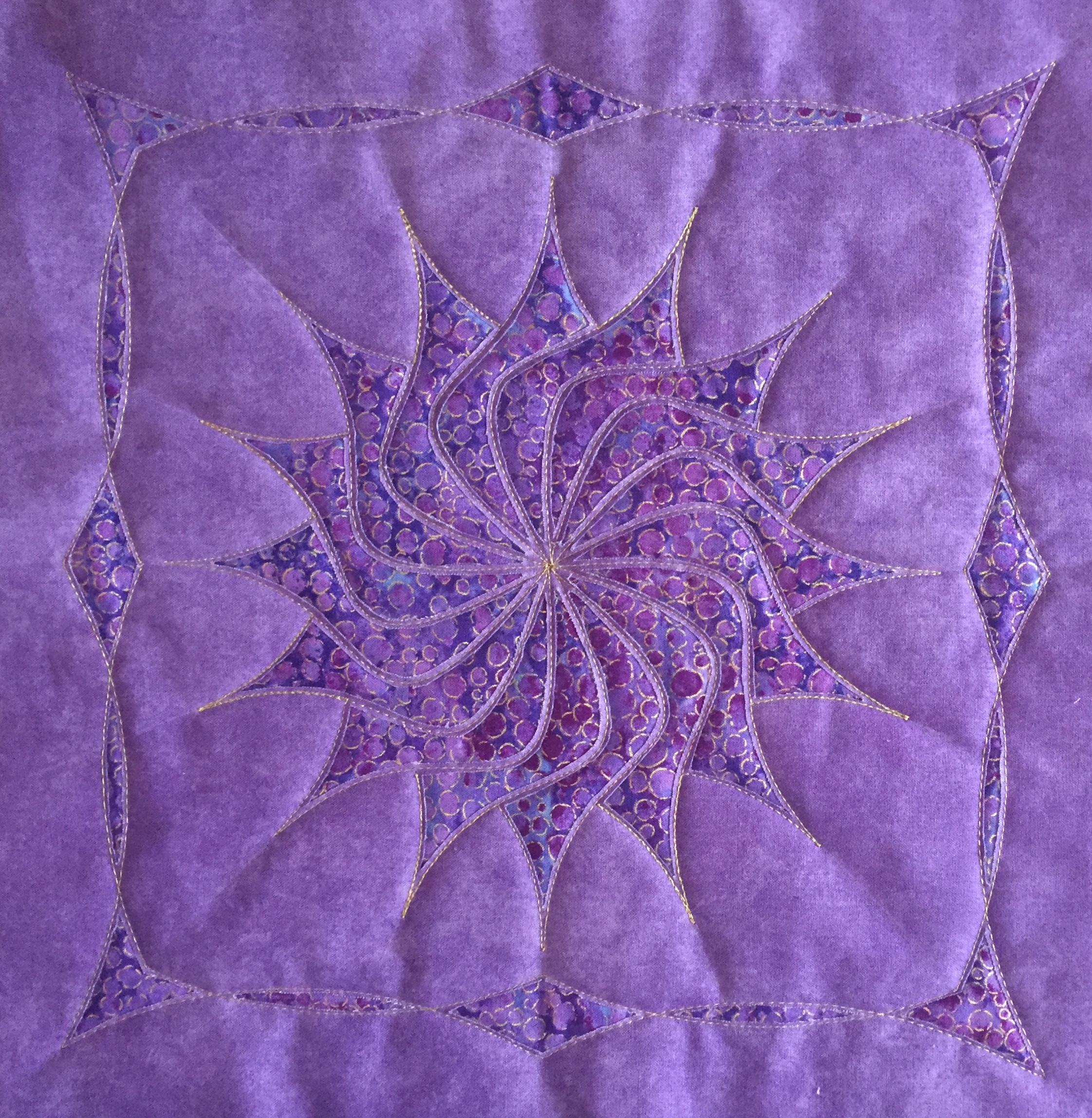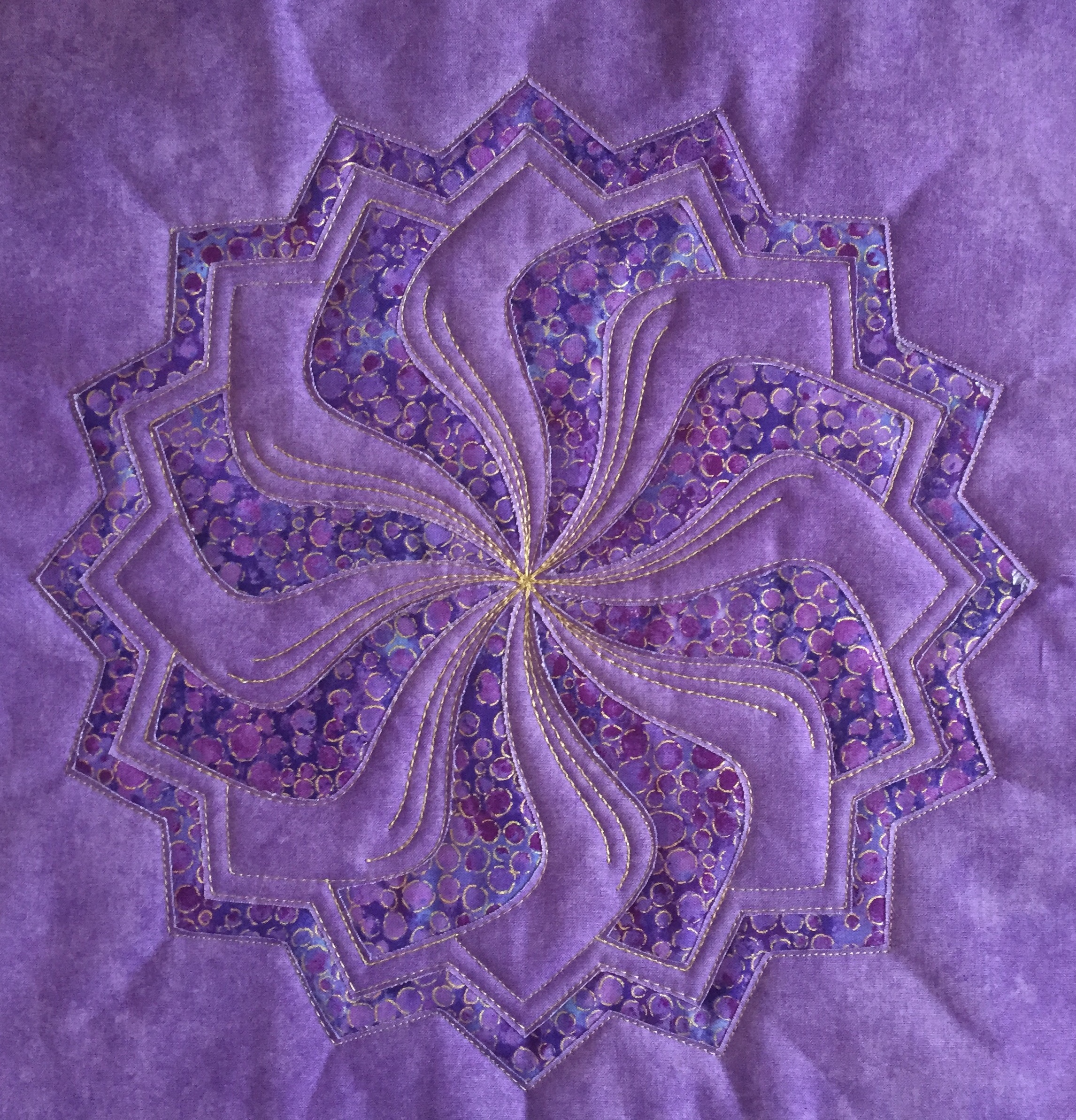 “Every design in this quilt is made almost entirely with the Spin-e-Fex #11. With the addition of Westalee Design’s TempLeeQuilt technique, the quilting takes on a whole new look with so many trimming options available. Made as a QAYG Quilt, the 2″ wide sashings are also quilted.” – Helen Sullivan