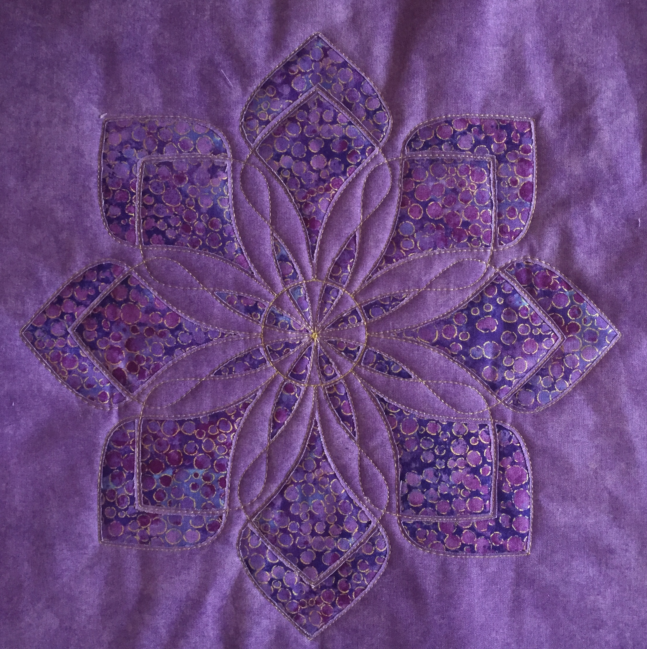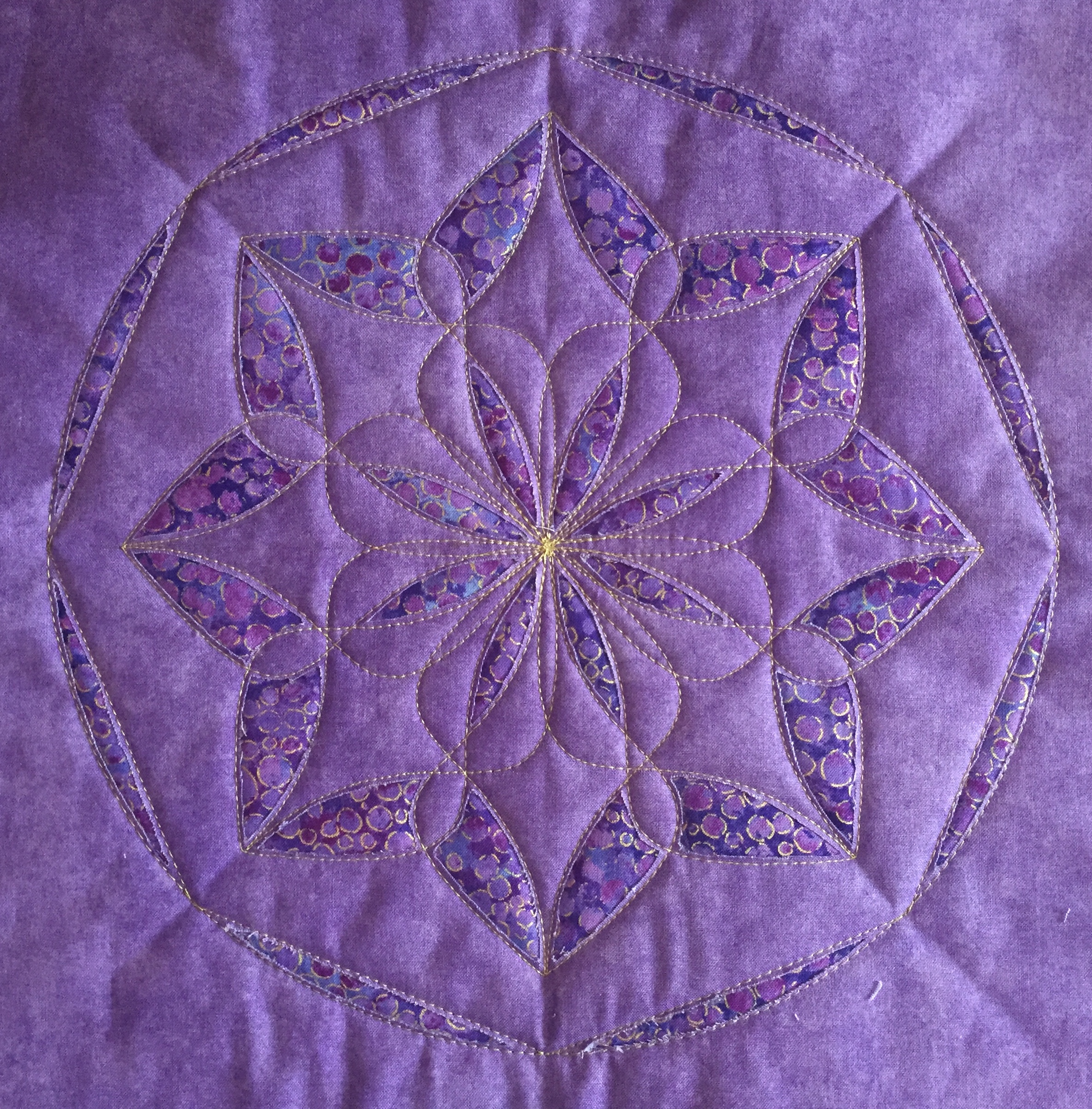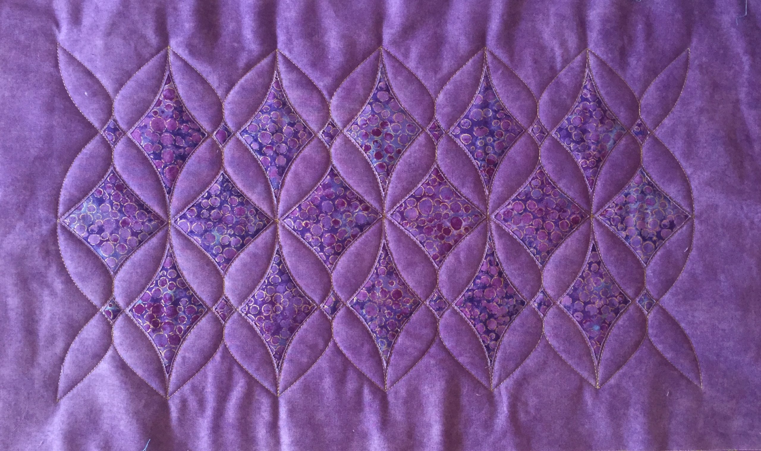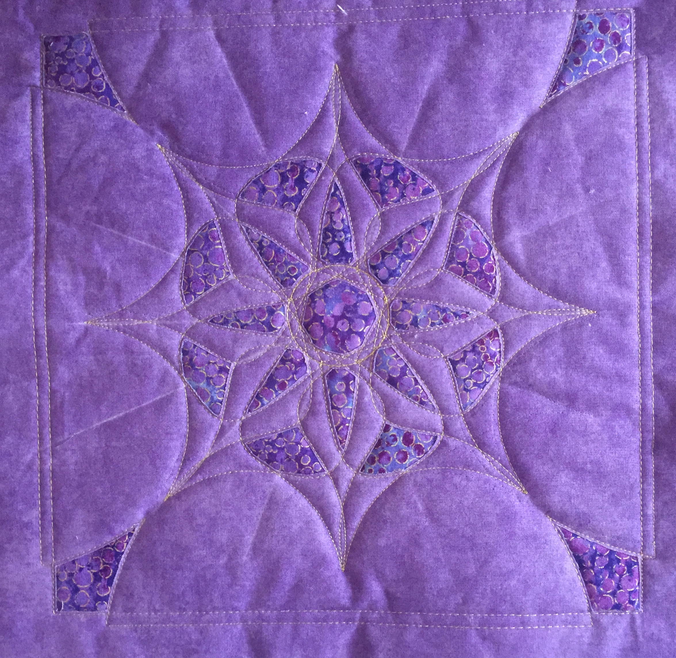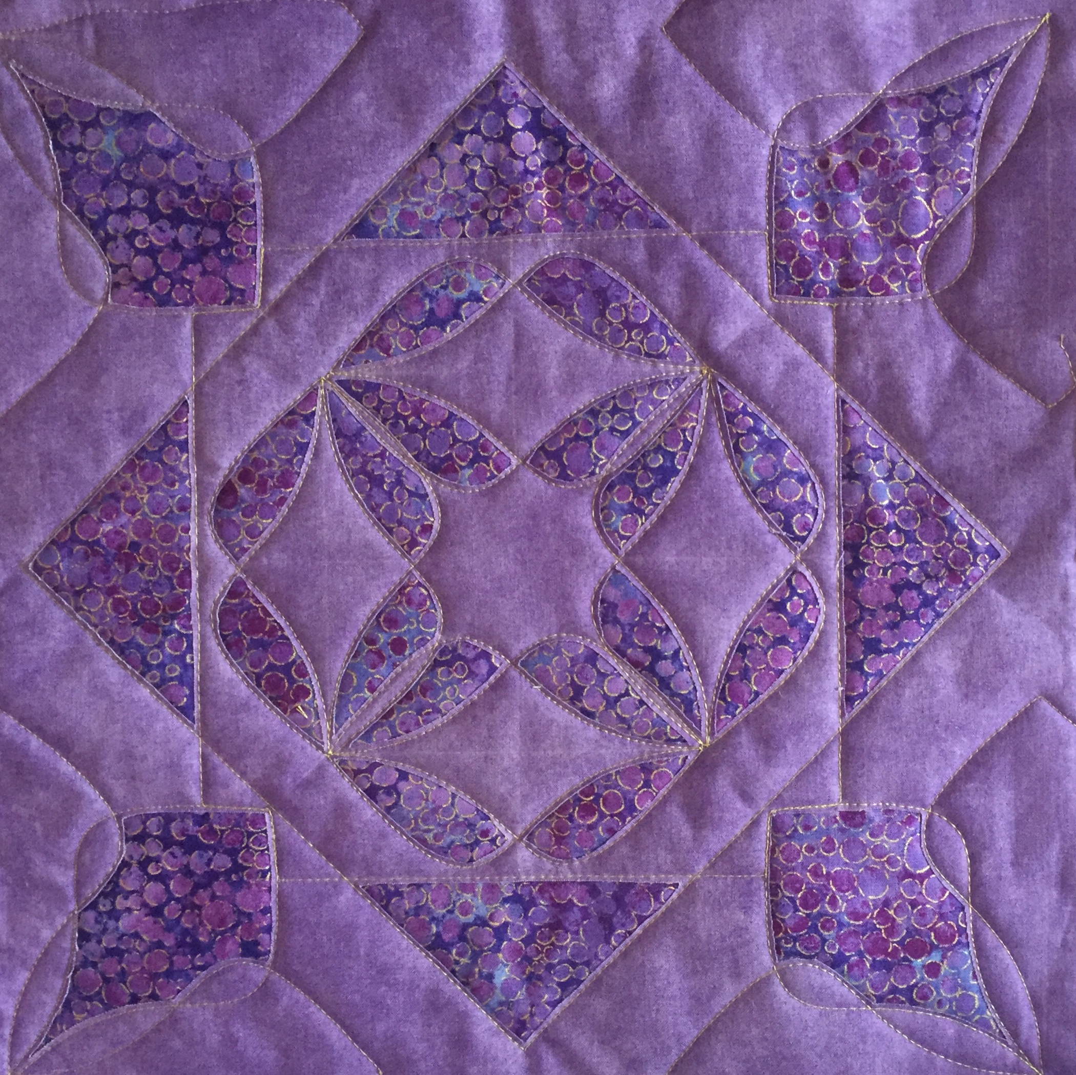 “Every design in this quilt is made almost entirely with the Spin-e-Fex #11. With the addition of Westalee Design’s TempLeeQuilt technique, the quilting takes on a whole new look with so many trimming options available. Made as a QAYG Quilt, the 2″ wide sashings are also quilted.” – Helen Sullivan