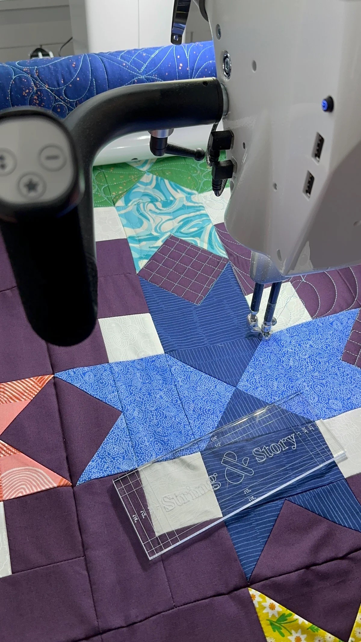 The String & Story Quilting Rockstar Straight Ruler is a basic straight edge ruler. It’s perfect for stitch in the ditch, grids, and other strong geometric shapes.