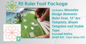 Get started quilting with rulers with the Westalee Design Domestic Ruler Foot, 12” Arc Template, 5-1/2″ Bloom Template and Stable Tape. This exclusive package can be found at our Westalee Design Resellers Nation Wide.