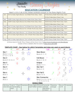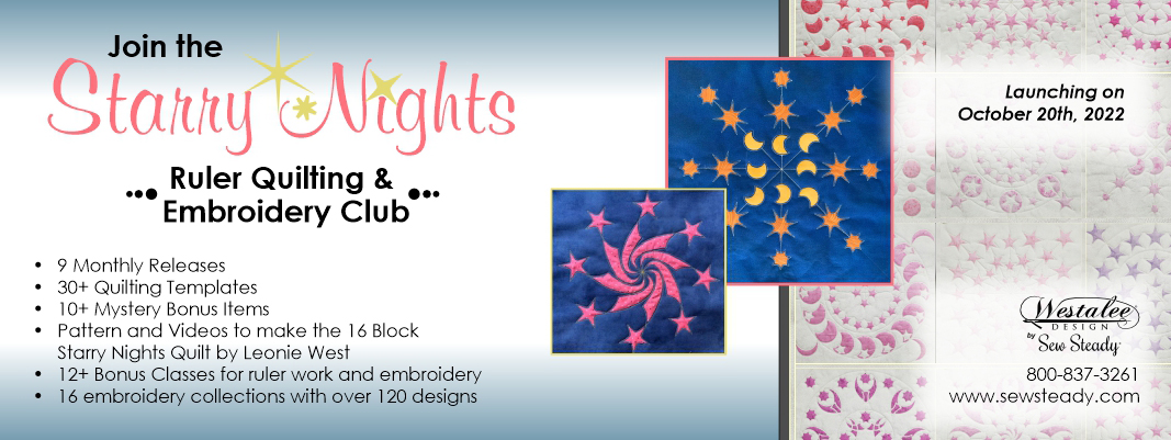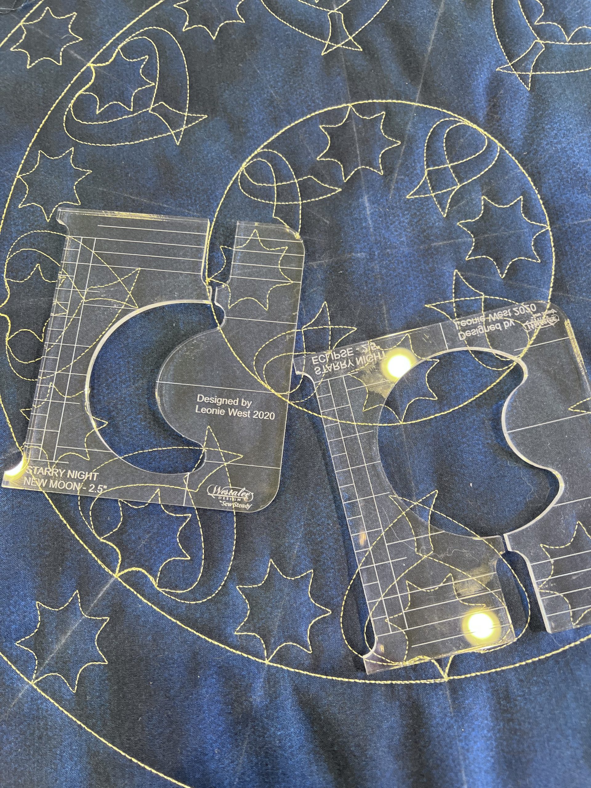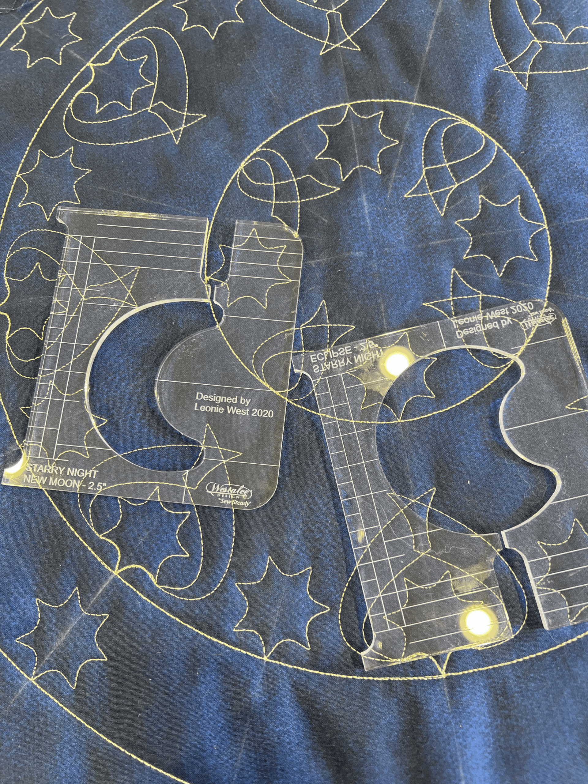 Some Templates utilize a thread slot, which is ideal for domestic machines. This design requires the ability to lift the foot, with the needle down, to pass the Template through without breaking thread. If you’re using a long arm machine, and cannot lift the foot, contact us prior to purchasing to discuss.