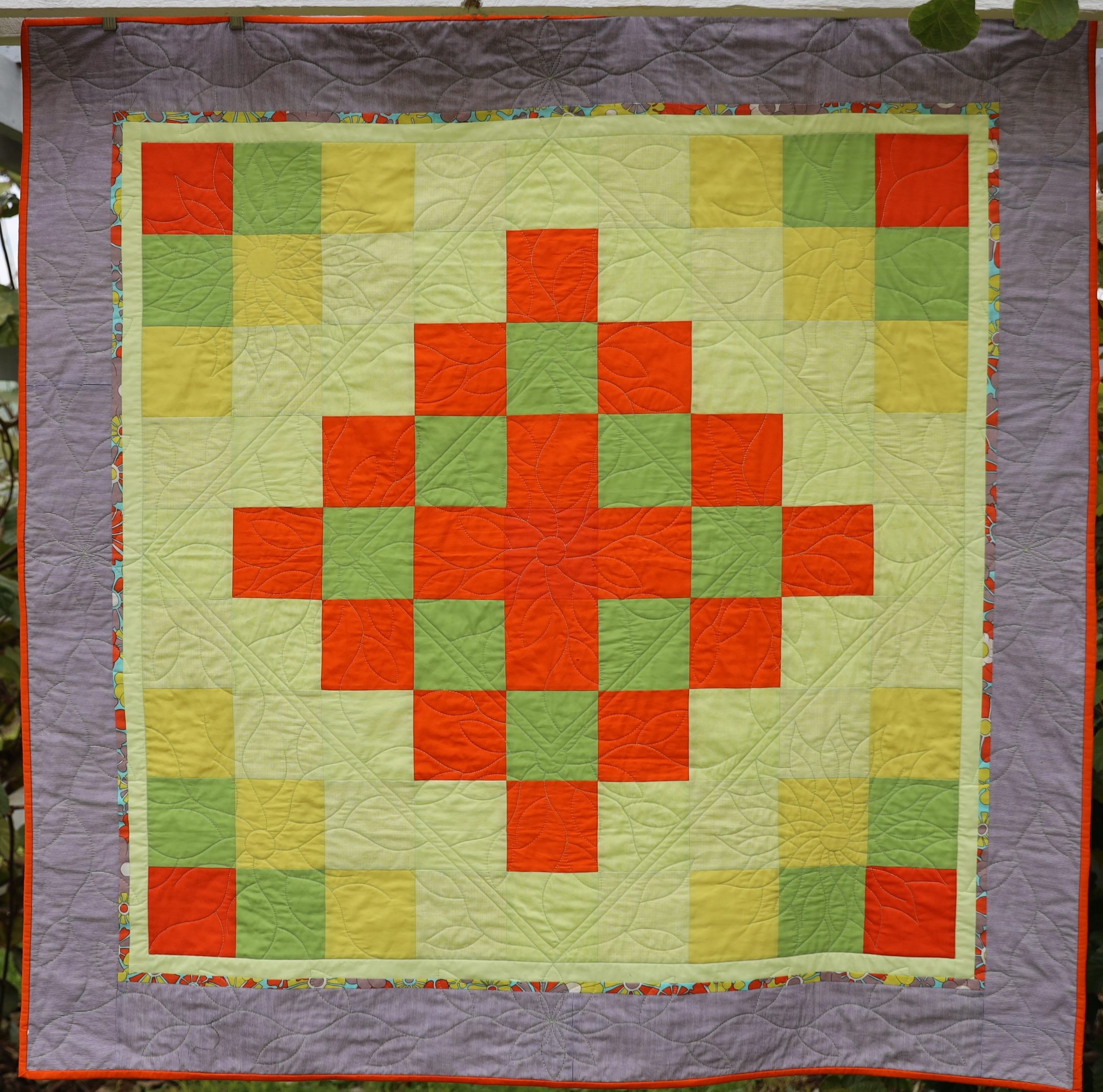 A lap quilt pieced with simple squares and a little yardage, precision pieced using the Westalee Design piecing tools. Quilted with a delicate design using the Coral Fern Template by Westalee Design. Use in many ways: as a fill, motif and border.