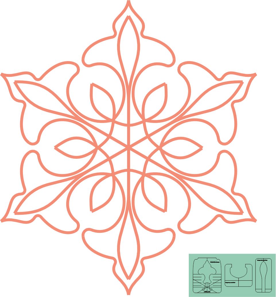 The 3pc Sampler Set includes the following sized designs: Leaf C (9″), Center 1C (4.5″) and Center 2C (8″) designs. Sizes are based on finished motif diameter when rotating pin is used.