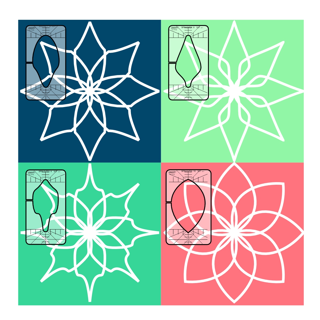 The Westalee Design 4pc Spin-e-fex #3 Template Collection combines 4 different 9-1/2″ sizes of Spin-e-fex Template: