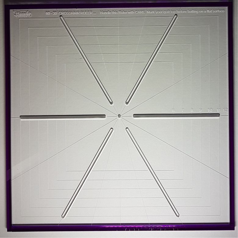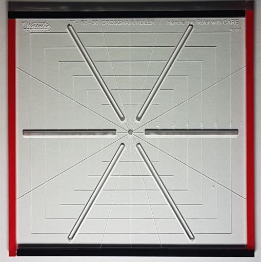 The Westalee Design 6 Point CROSSHAIR RULER is for marking 3 (120°) or 6 (60°) or 12 (30°) or 24 (15°) reference lines, great for Hexagon Quilt patterns. The 12.5″ size allows you to mark up to 12″ blocks. AND The 8.5″ size allows you to mark up to 8″ blocks.