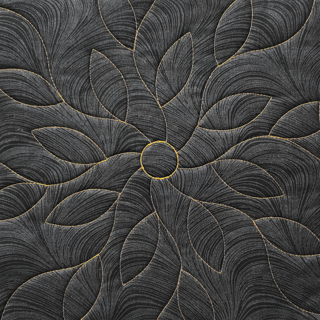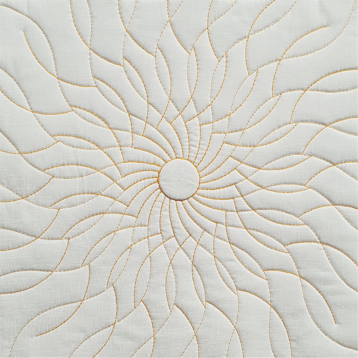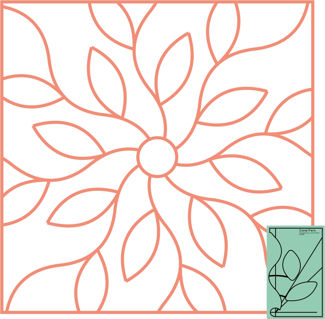 A beautiful circular design of a wavy spine and leaves for quilting blocks and borders. Quilt amazing designs using Leonie West’s TempLeeQuilt technique.