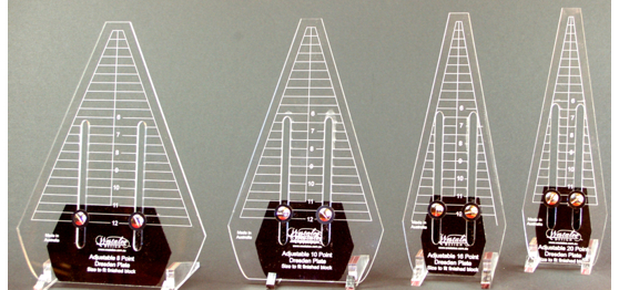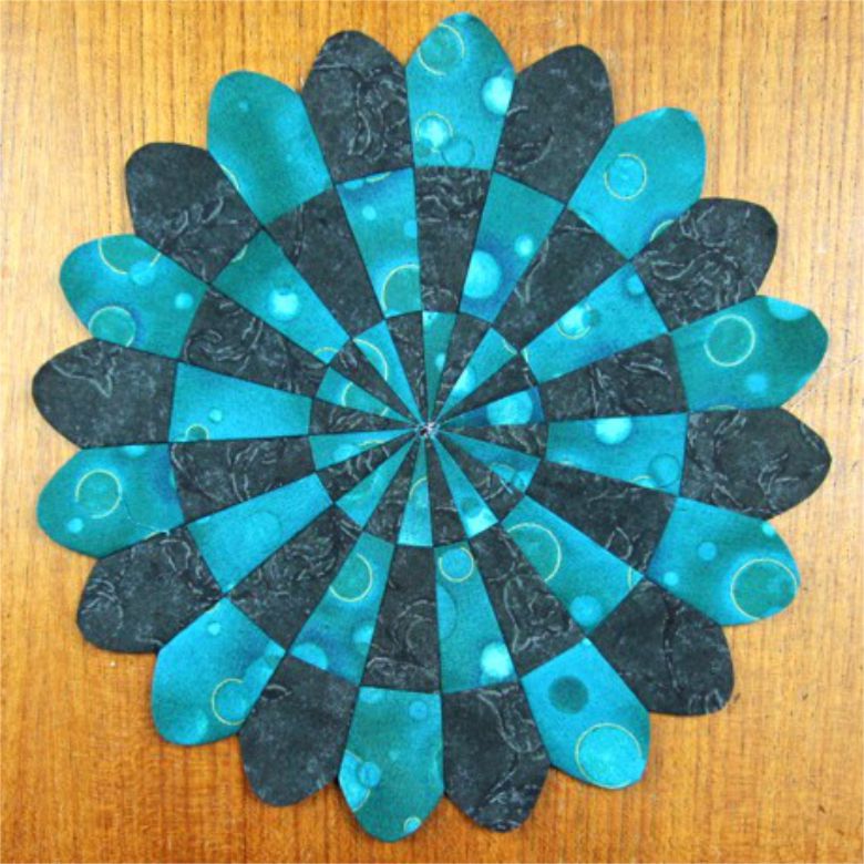 The adjustable Dresden Plates are available in 5 different numbers of wedge: 8 point, 10 point, 12 point, 16 point, 20 point. Adjust the guide to make plates fit from 6″ – 12″ blocks.