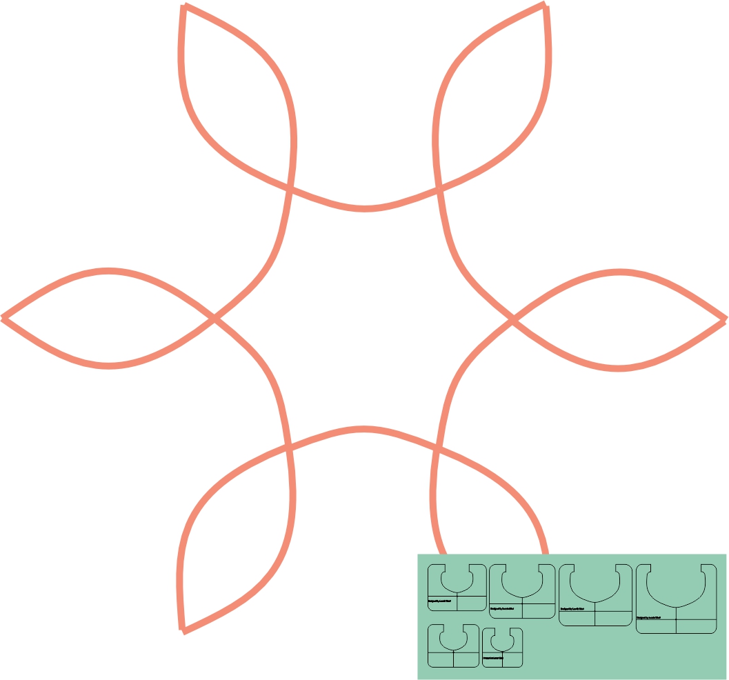 The set includes the following sized designs: 2.25″, 2.75″, 3.25″, 4.5″, 5.75″ and 6.75″ designs. Sizes are based on finished motif diameter when rotating pin is used.