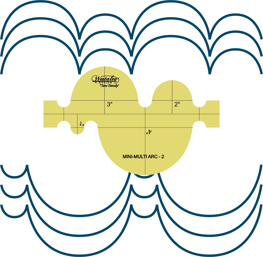 Introducing the new Westalee Design Mini Multi Arc Ruler. The template has 1”, 2”, 3” and 4” arcs. The arcs begin and end with a space for the ruler foot to rest.