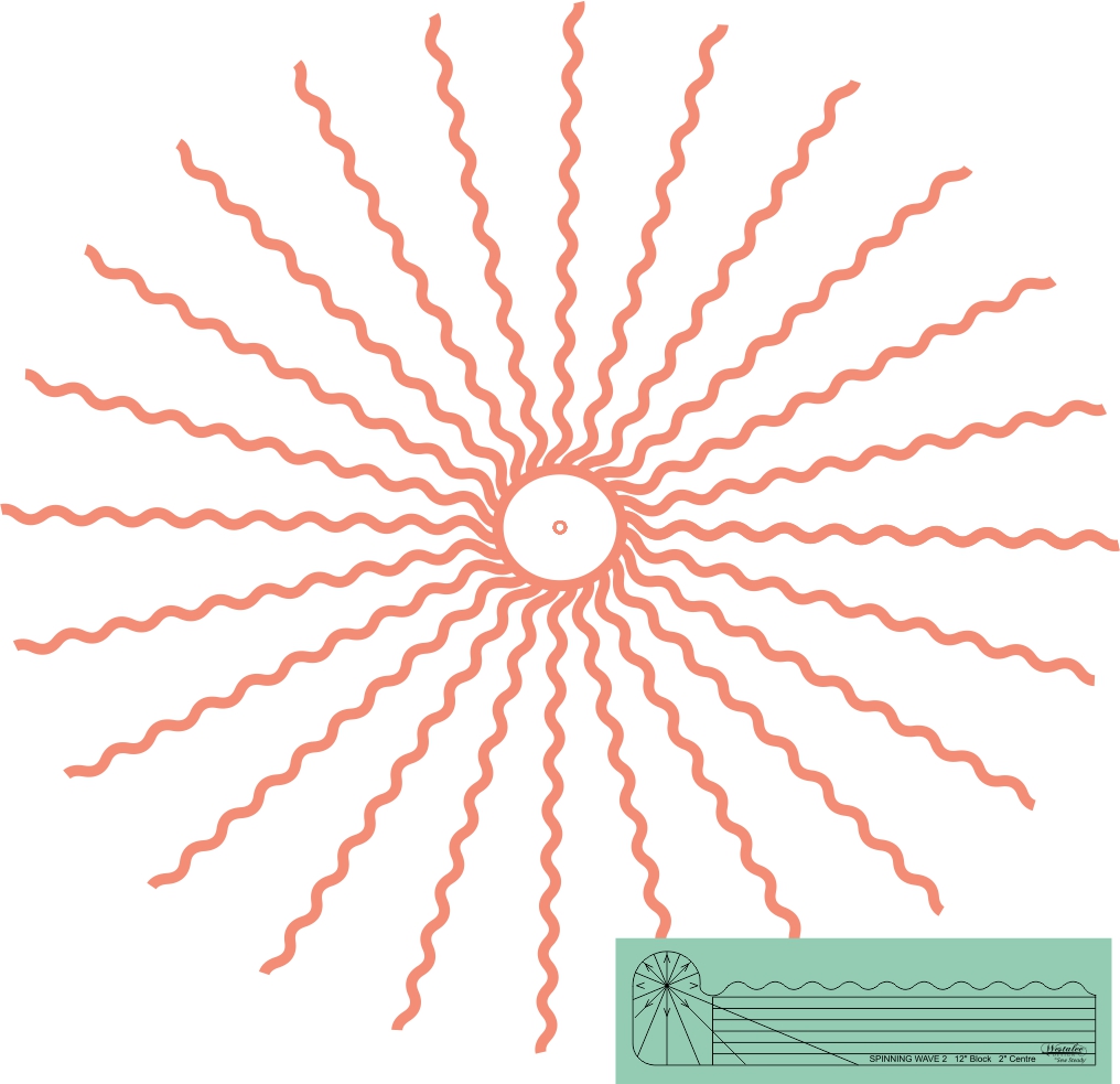 The Spinning Wave Templates will stitch out to fill a 12″ block with a 2″ centre, Template can be flipped for effect.