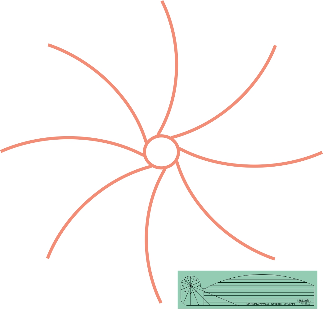 The Spinning Wave Templates will stitch out to fill a 12″ block with a 2″ centre, Template can be flipped for effect.