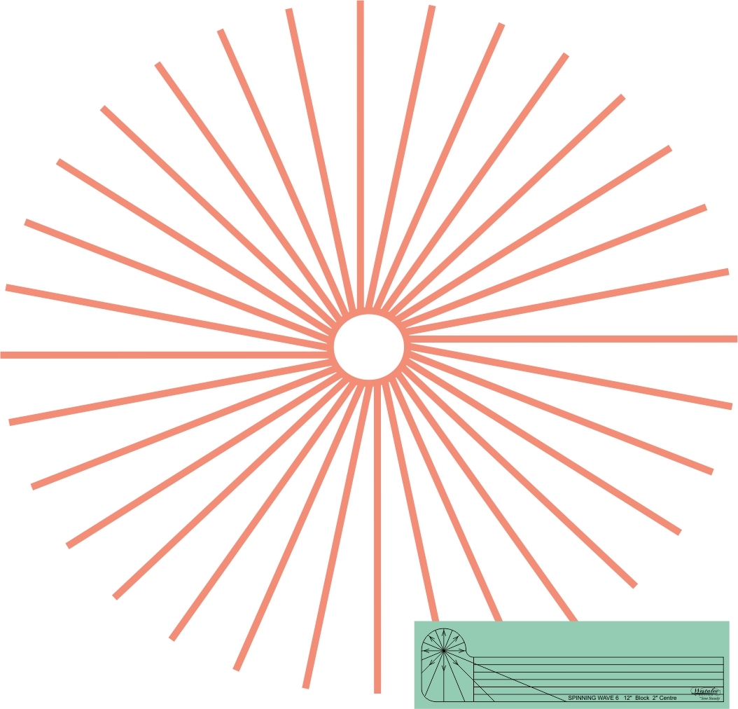 The Spinning Wave Templates will stitch out to fill a 12″ block with a 2″ centre, Template can be flipped for effect.