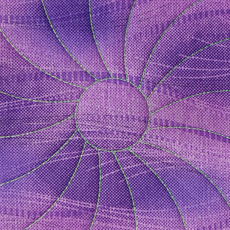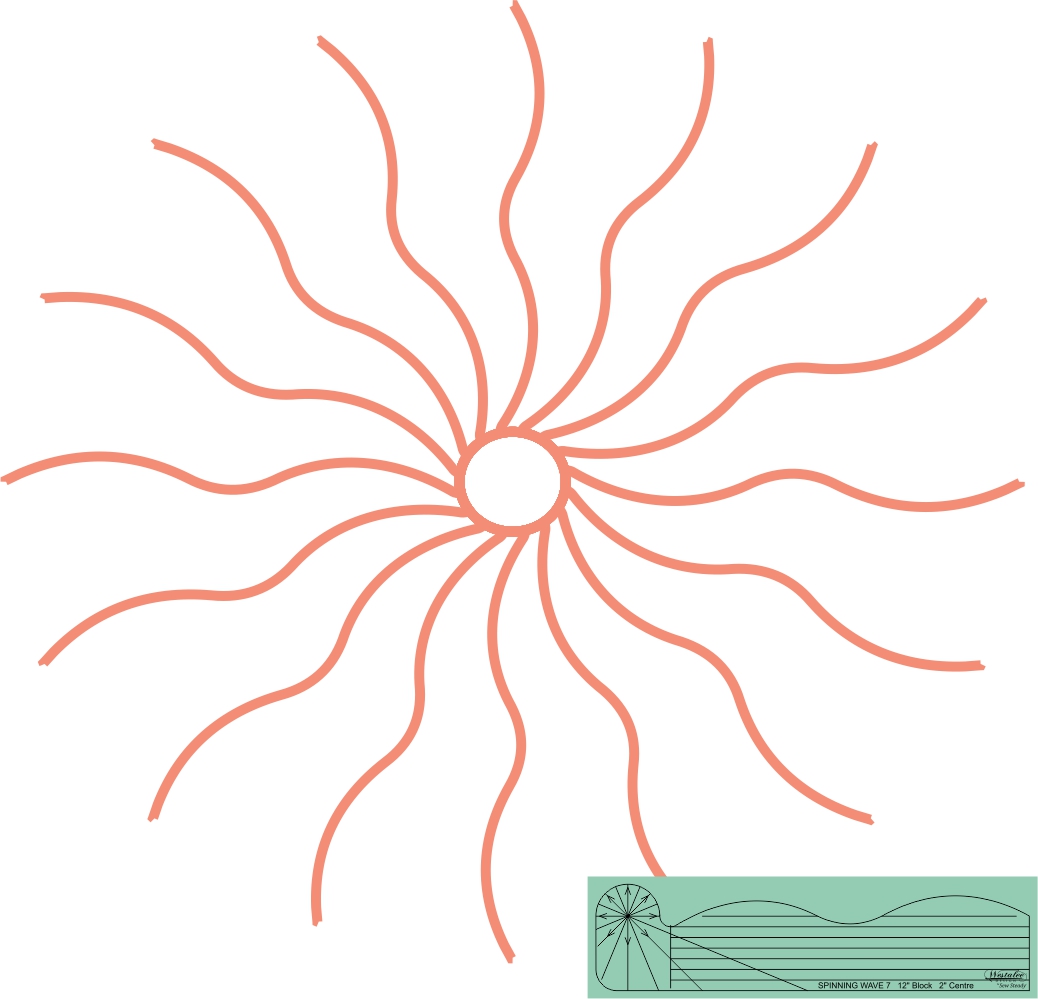 The Spinning Wave Templates will stitch out to fill a 12″ block with a 2″ centre, Template can be flipped for effect.